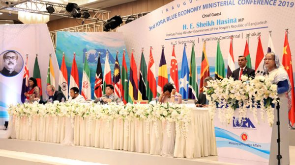 প্রধানমন্ত্রী শেখ হাসিনা ইন্ডিয়ান ওসান রিম এসোসিয়েসনের কনফারেন্স   উদ্ভোবধনকালে  বলেন সবাইকে খেয়াল রাখতে হবে যেন অর্থনৈতিক সমৃদ্ধি    অর্জন করতে গিয়ে সমুদ্রের সুস্থ   পরিবেশ   বিঘ্নিত না হয়। শেখ হাসিনা আজ ঢাকার একটি হোটেলে  আইওআরএ এর ব্লু ইকোনোমি