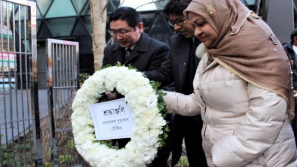 বাংলা হেডলাইনস: জাপানের টোকিওস্থ বাংলাদেশ দূতাবাসের উদ্যোগে যথাযথ ভাবগাম্ভীর্য ও মর্যাদায় মহান শহীদ দিবস ও  আন্তর্জাতিক মাতৃভাষা দিবস পালিত হয়েছে । আজ  শুক্রবার সকাল ৭.৩০ টায় অনুষ্ঠান শুরু হয় ভাষা