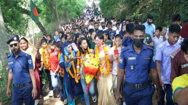 সাফজয়ী পাঁচ পাহাড়ী কন্যাকে রাঙ্গামাটিবাসীর বীরোচিত সংবর্ধনা