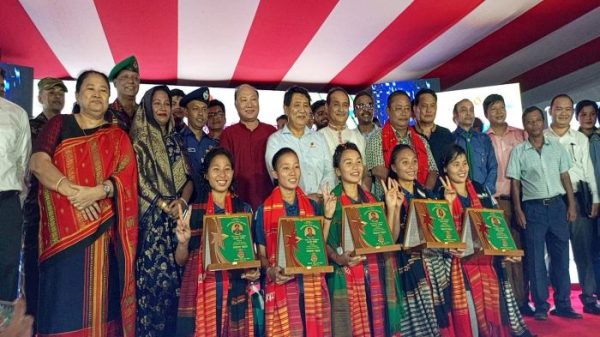 পাহাড়ের সাফ চ্যাম্পিয়ন পাঁচ নারী ফুটবলারকে সংবর্ধনা