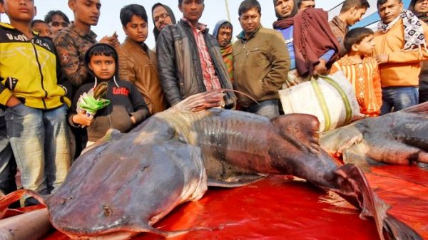 পোড়াদহ মেলায় প্রধান আকর্ষণ লক্ষাধিক টাকা মূল্যের বাঘাইর মাছ