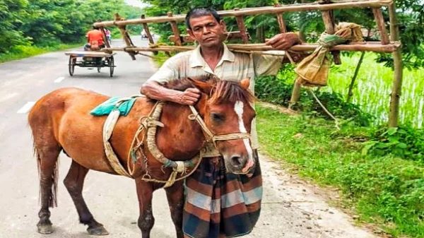 সাজ্জাদুল তুহিন, বাংলা হেডলাইনস নওগাঁ প্রতিনিধি: ঘোড়া দিয়ে অন্যের জমি চাষ করে জীবিকা নির্বাহ করছেন নওগাঁর নিয়ামতপুর উপজেলার শাবিলপুর গ্রামের শরিফুল ইসলাম। তার সংসারে সচ্ছলতা ফিরেছে। গরু-মহিষ দিয়ে জমি চাষের
