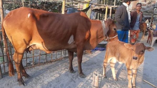শাহজাদপুরে ৬পা বিশিষ্ট বাছুর দেখতে ভিড়