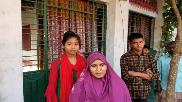 সন্তানের পিতৃ পরিচয়ের দাবিতে স্বামীর বাড়িতে অবস্থান এক নারীর
