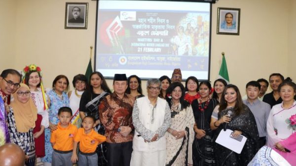 বাংলা হেডলাইনস: নাইজেরিয়ায় বাংলাদেশ হাইকমিশন যথাযথ মর্যাদায় শহীদ দিবস ও আন্তর্জাতিক মাতৃভাষা দিবস পালন করেছে। হাইকমিশন মিলনায়তনে ২১ ফেব্রুয়ারি সন্ধ্যা ৭ ঘটিকায় একটি আলোচনা সভা ও বহু ভাষা-ভিত্তিক একটি বর্ণিল