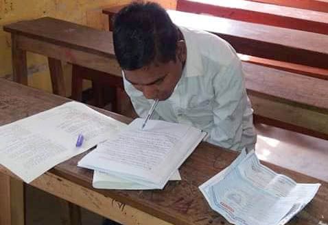 উল্লাপাড়ায় মুখ দিয়ে লিখে এসএসসি পরীক্ষা দিচ্ছে ঈশ্বর