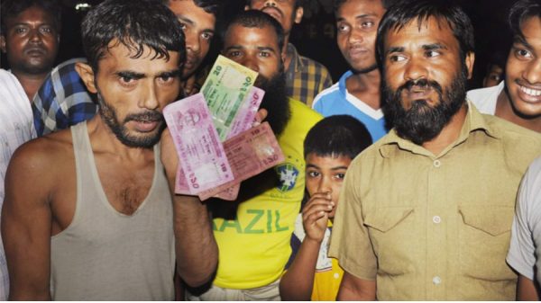 নদীতে টাকা ভাসছে! শত শত মানুষের ভিড়